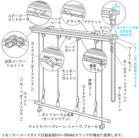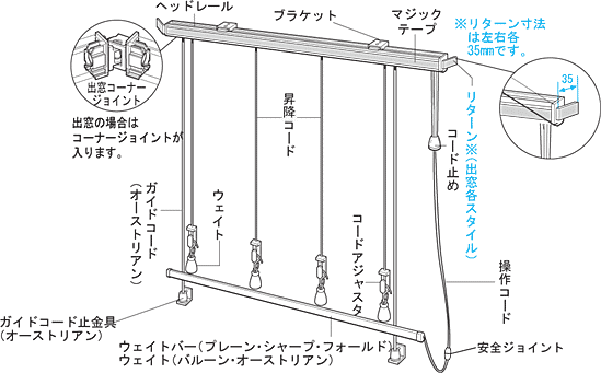 布地をいかしたウィンドウエレメントの一種で、シェードを上に