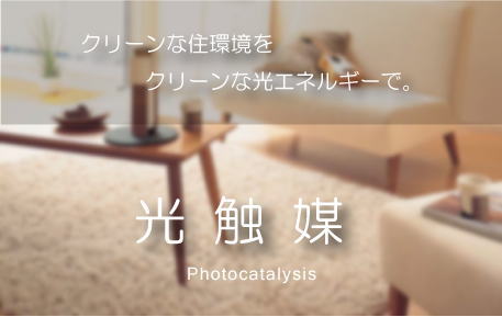 酸化チタン(TiO2)に光(紫外線)を照射することで、OH(ヒドロキシラジカル)やO2-(スーパーオキサイドアニオン)などの活性酸素を生成させます。これら活性酸素は反応性が非常に高く、塩素や過酸化水素・オゾンなどよりも強い消毒・抗菌能力を発揮。有害な揮発性有機化合物(VOC)や臭気成分などを酸化分解し、無害化します。